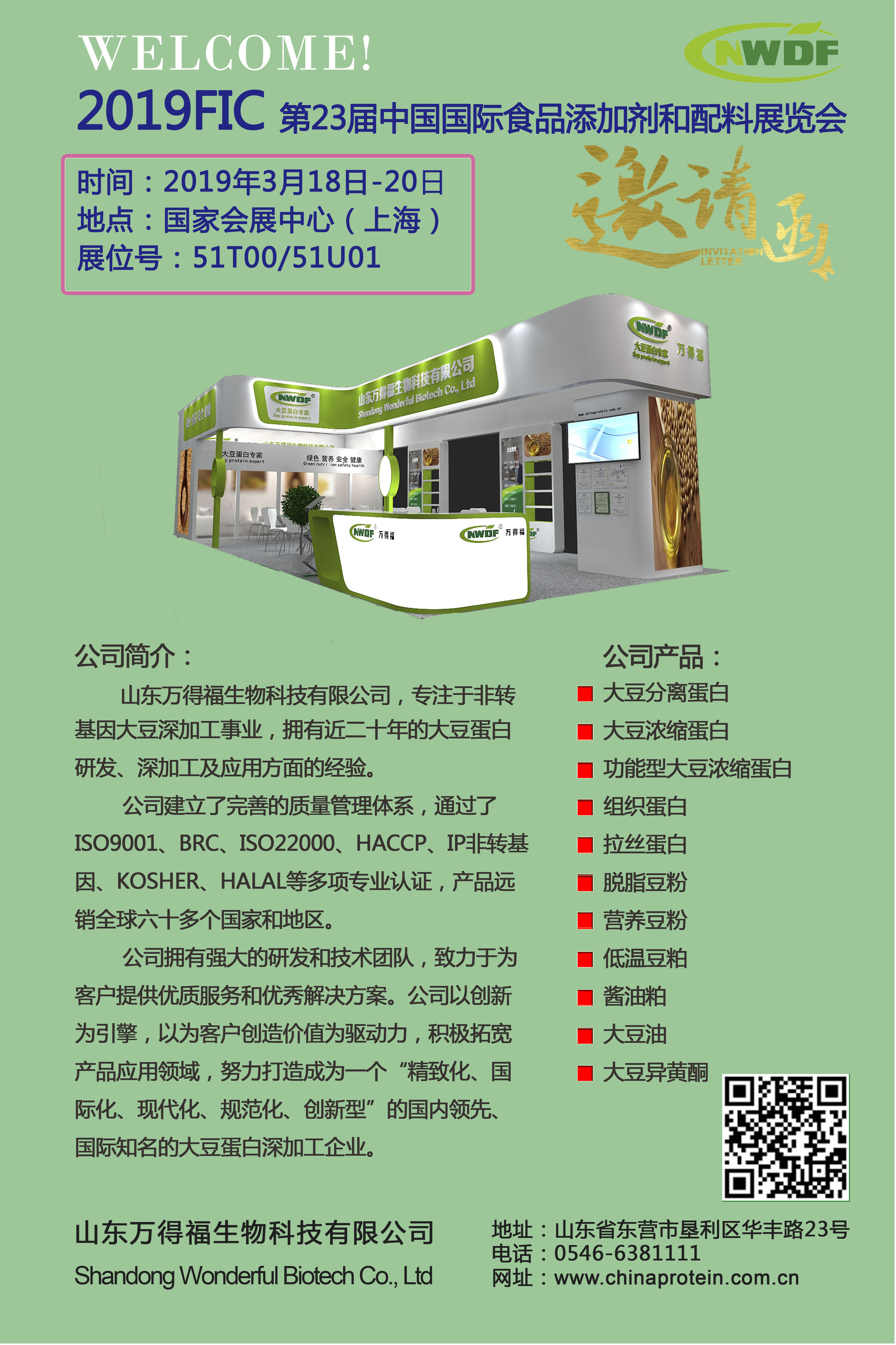 歡迎參加第23屆中國國際食品添加劑和配料展覽會(2019FIC)